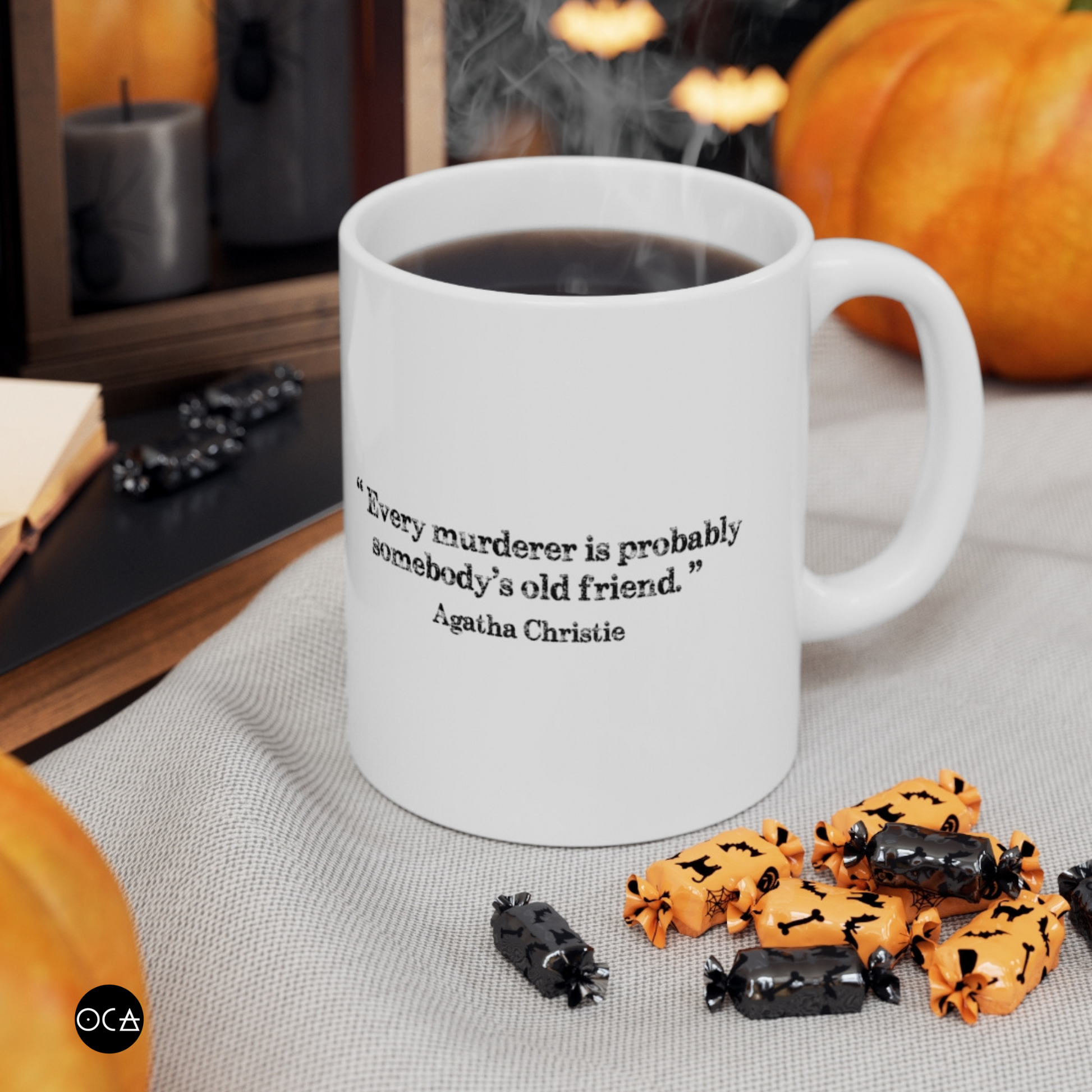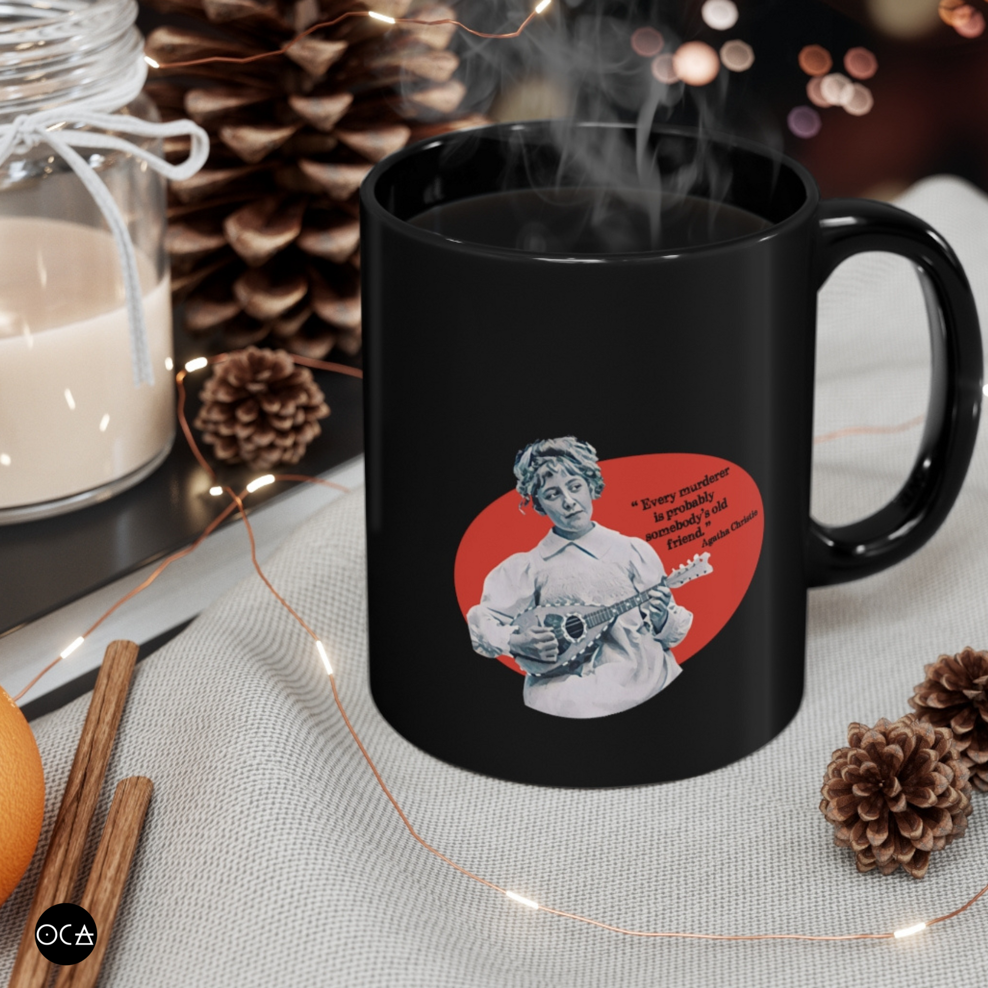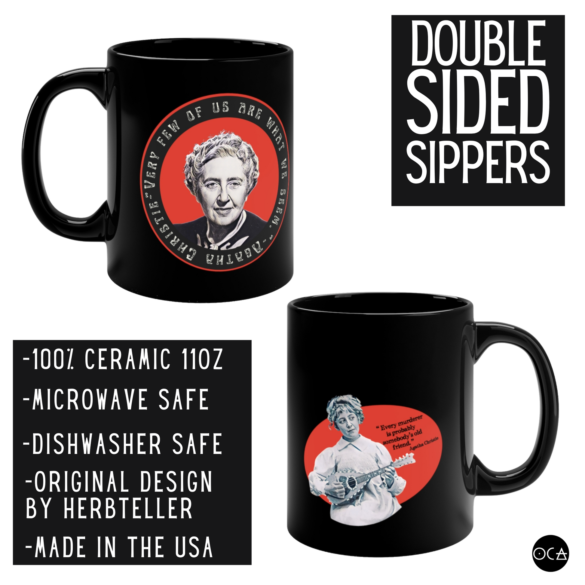 I designed these double-sided mugs as an ode of gratitude for Agatha Christie and mystery lovers everywhere. Her life, like her work, is profoundly enchanting.